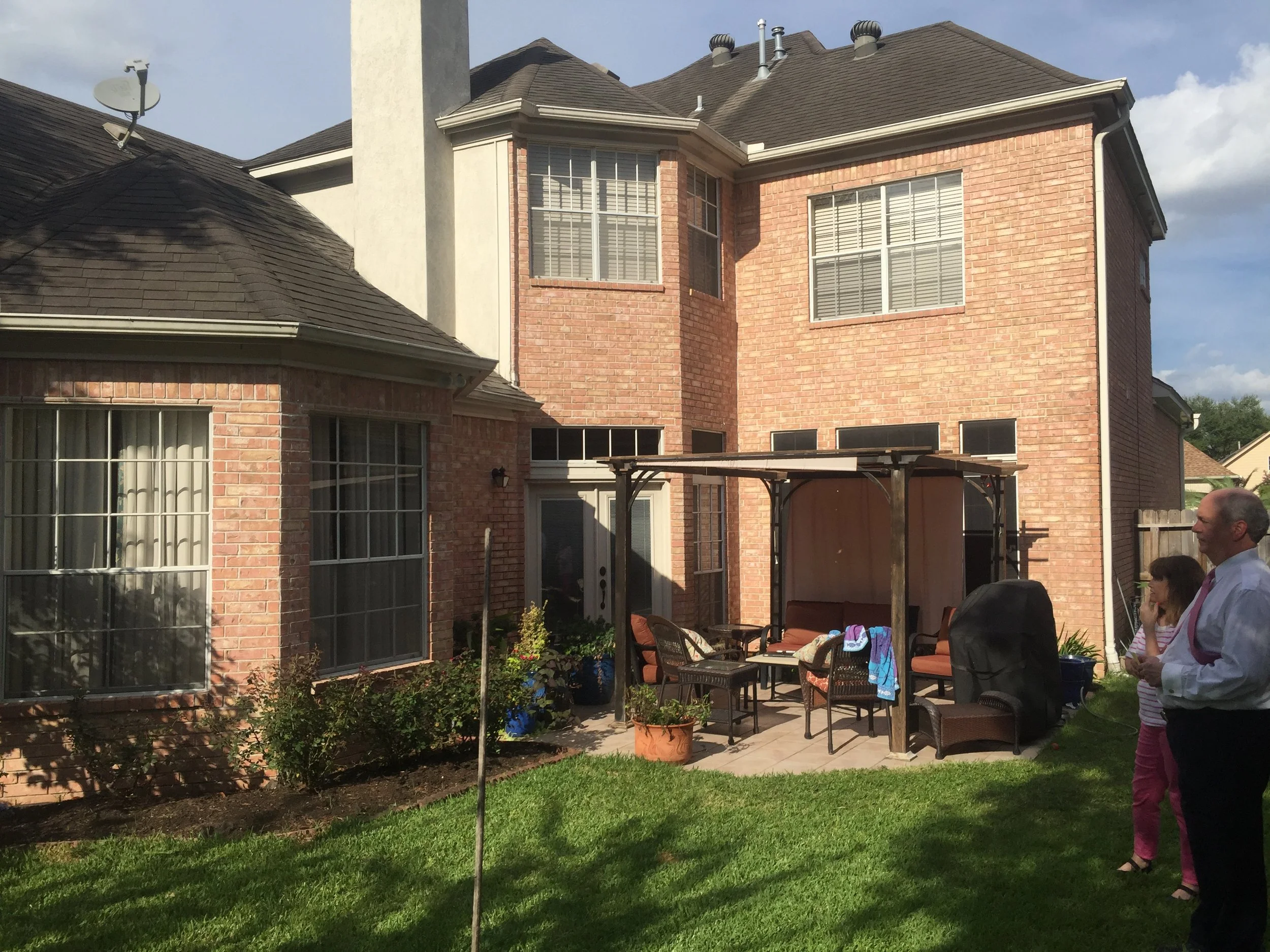 Texas patio cover design with an outdoor kitchen, granite countertops, and low-maintenance pavers.